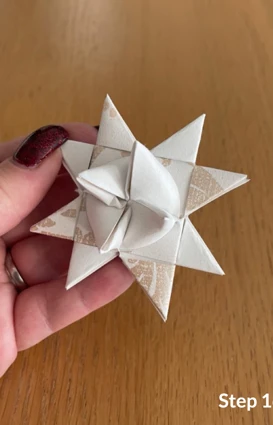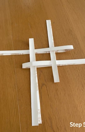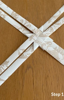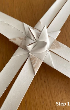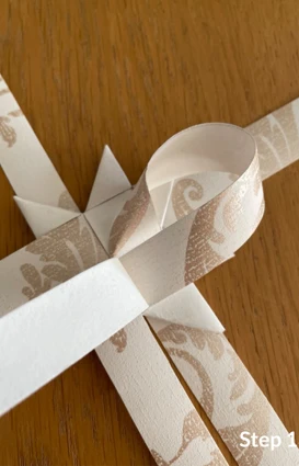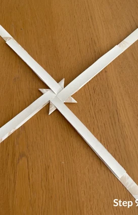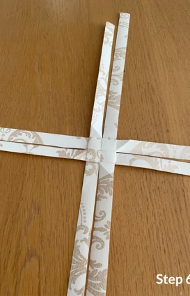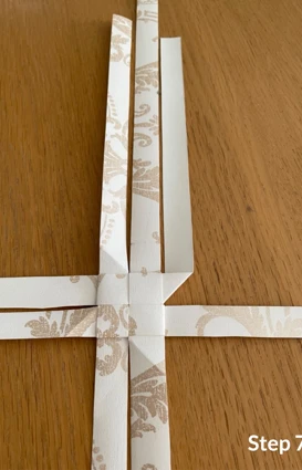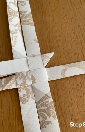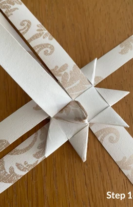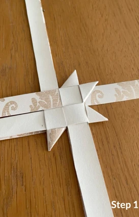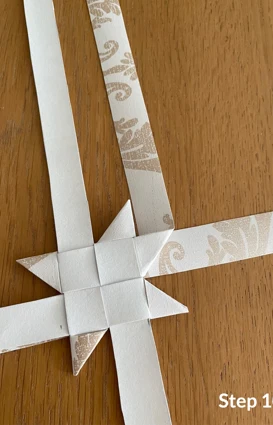 Vik sedan den långa delen av remsan till ytterligare ett hörn och lägg den ovanpå, innan du för remsan ned och igenom stjärnan.
