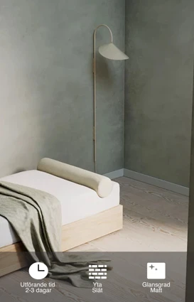 För dig som vill bli klar på en dag. En kombination av målarfärgens funktionalitet och spacklets uttryck. Du får en matt yta med textil känsla.