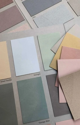 Produkterna från DETALE CPH skapar levande, taktila ytor och kretsar kring färgat spackel och spackelfärg.