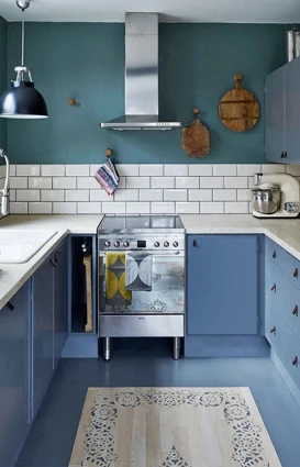 Här är ett exempel på hur nya kulörer kan ge köket ett helt nytt och fräscht uttryck. En ny kulör till väggen, målade köksluckor, nytt golv, nya handtag och några små detaljer har gjort hela skillnaden.