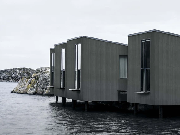 Grå, gråblå och vitgrå kulörer harmonierar fint med kustlandskapet och skapar ett friskt, luftigt uttryck som fångar det naturliga ljuset.