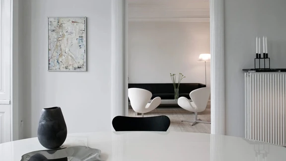 Vår vita väggfärg finns tillgänglig från ultramat till halvmatt. Glansen påverkar inte bara hur kulören kommer till uttryck utan den spelar också en avgörande roll för hur ljuset reflekteras i rummet.