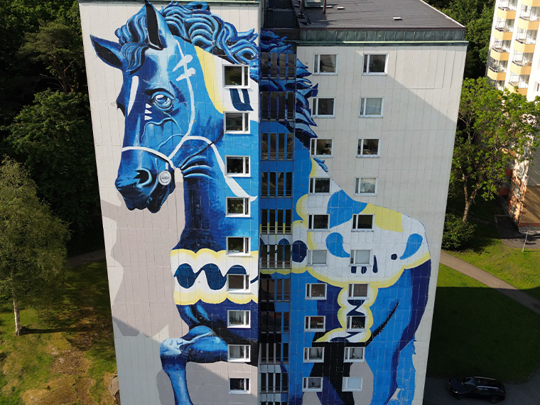 Världens största Dalahäst är 45 meter hög och pryder en fasad utanför Göteborg. Ett verk som syns på håll, men bär en idé som når längre. När den svensk-amerikanske muralartisten Shai Dahan målar Dalahästar handlar det inte om att återskapa tradition, utan om att tolka den vidare. För Shai är Dalahästen en symbol för öppenhet och gemenskap – något han själv upplevde när han flyttade till Sverige 2010.