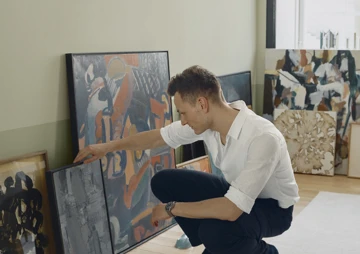 Nikolajs hem är i kreativ rörelse där kulörer lever och förändras med honom.