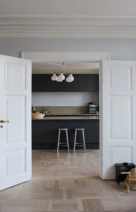 Lägenheten på Amager tillhörde en gång Jonathans morfar. I dag är den varsamt renoverad från golv till tak. De tunga lagren är borta och ljuset får flöda fritt genom rummen, med vyer mot takåsar och himmel. Här har Sofie skapat ett andrum tillsammans med sin familj.