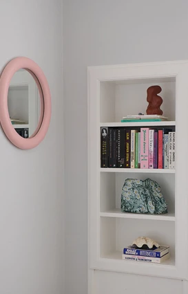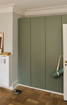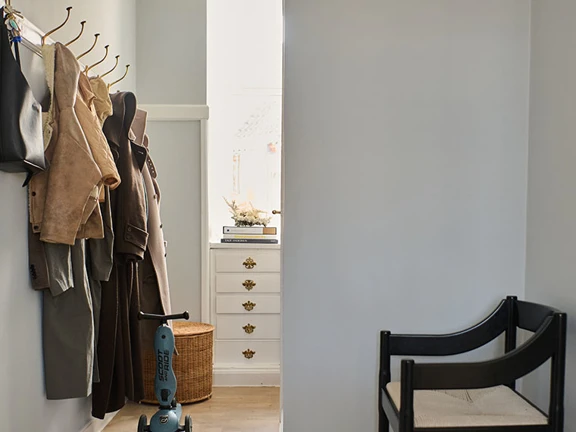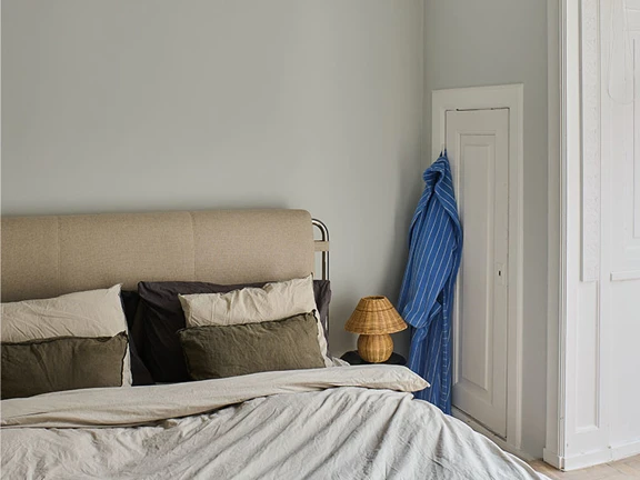 Kulörerna väljs för hur de får både rummet och kroppen att kännas. Vita väggar är inte en självklarhet för att skapa klarhet, det gör även de lugna tonerna som lyfter fram detaljerna.