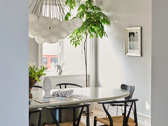 "Ljuset betyder otroligt mycket. Eftersom vi bor på femte våningen med fönster åt två håll, får vi ett ljusinsläpp som gör allt luftigt och levande."