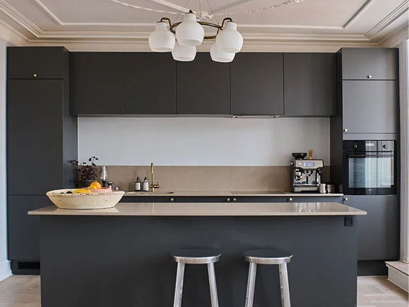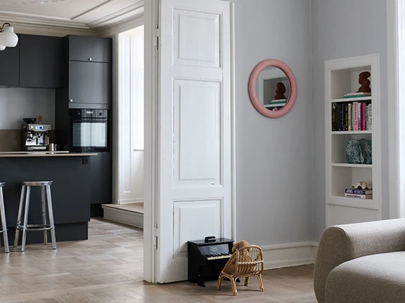 "Jag tycker särskilt mycket om den gråaktiga nyansen eftersom den skiftar med ljuset under dagen. Den omfamnar rummet och lyfter fram alla små detaljer i lägenheten… Material, strukturer och övergångar, på ett sätt som känns lugnt, sinnligt och sammanhängande."