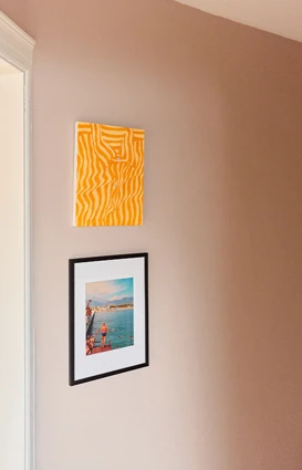 Som fotograf med uppdrag för bland andra ELLE och DOSSIER, och som ögat bakom flera Talks of Colour-reportage, arbetar Kavian dagligen med estetik och komposition. Det märks tydligt i hemmet. Här är kulörerna noggrant utvalda för att skapa en lugn bakgrund som låter kontrasterna och de små överraskningarna ta plats. Lampor från 50-, 60- och 70-talet samsas med udda konstverk och inramade barnteckningar – detaljer som ger karaktär åt den charmiga lägenheten, där inredningen blir en vacker motvikt till väggarnas varma, dämpade kulörer.