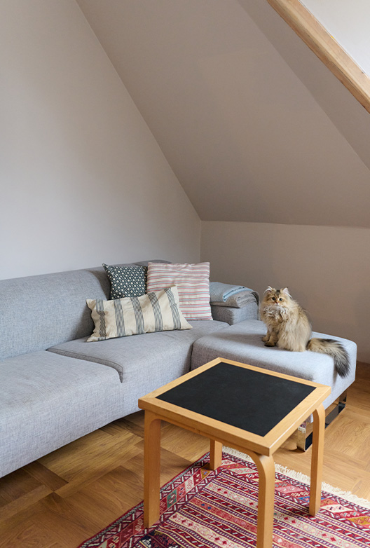 Bor i en vindsvåning på Østerbro med sin partner och deras två katter