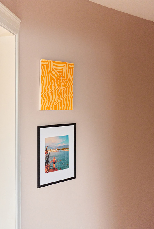 Som fotograf med uppdrag för bland andra ELLE och DOSSIER, och som ögat bakom flera Talks of Colour-reportage, arbetar Kavian dagligen med estetik och komposition. Det märks tydligt i hemmet. Här är kulörerna noggrant utvalda för att skapa en lugn bakgrund som låter kontrasterna och de små överraskningarna ta plats. Lampor från 50-, 60- och 70-talet samsas med udda konstverk och inramade barnteckningar – detaljer som ger karaktär åt den charmiga lägenheten, där inredningen blir en vacker motvikt till väggarnas varma, dämpade kulörer.