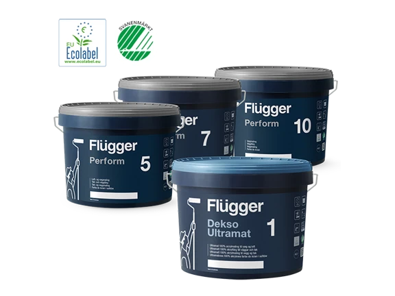 Som tur är har vi några andra ännu bättre alternativ åt dig! Vi är glada över att kunna presentera väggfärgerna Dekso 1 och Perform som ersättningar för Flutex väggfärg. Båda är miljömärkta med Svanenmärket och EU-Blomman, vilket betyder att du kan vara säker på att de lever upp till stränga miljö- och kemikaliekriterier.