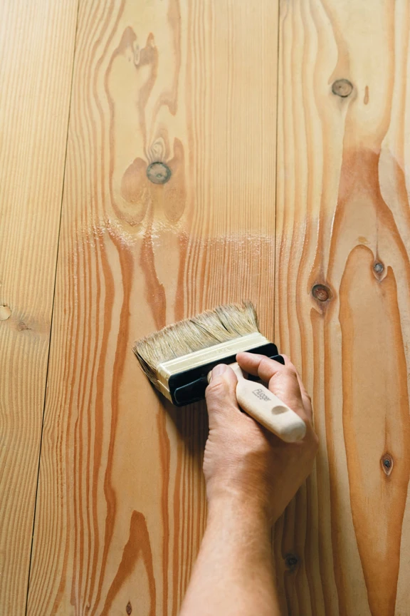 - Kontrollera fuktigheten i träet. När du ska behandla dina obehandlade utomhusträ med ett lager träskydd är det viktigt att det är helt torrt. Fönster och dörrar får exempelvis inte ha en fuktighet på mer än 12 procent när du målar. För takutsprång, träfasader och liknande får fuktigheten inte överstiga 15 procent. Köp eller låna därför en fuktmätare som du kan mäta träets fuktighet med innan du sätter igång.